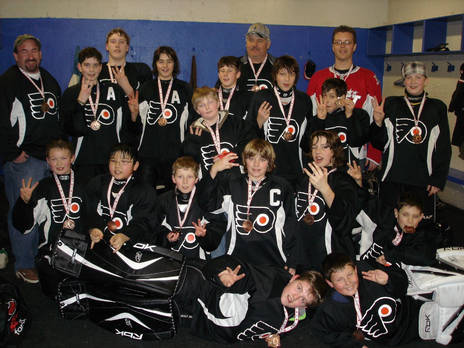 Caren's Langley Flyers Hockey Team (He's top row with A on shirt Closest to center.)